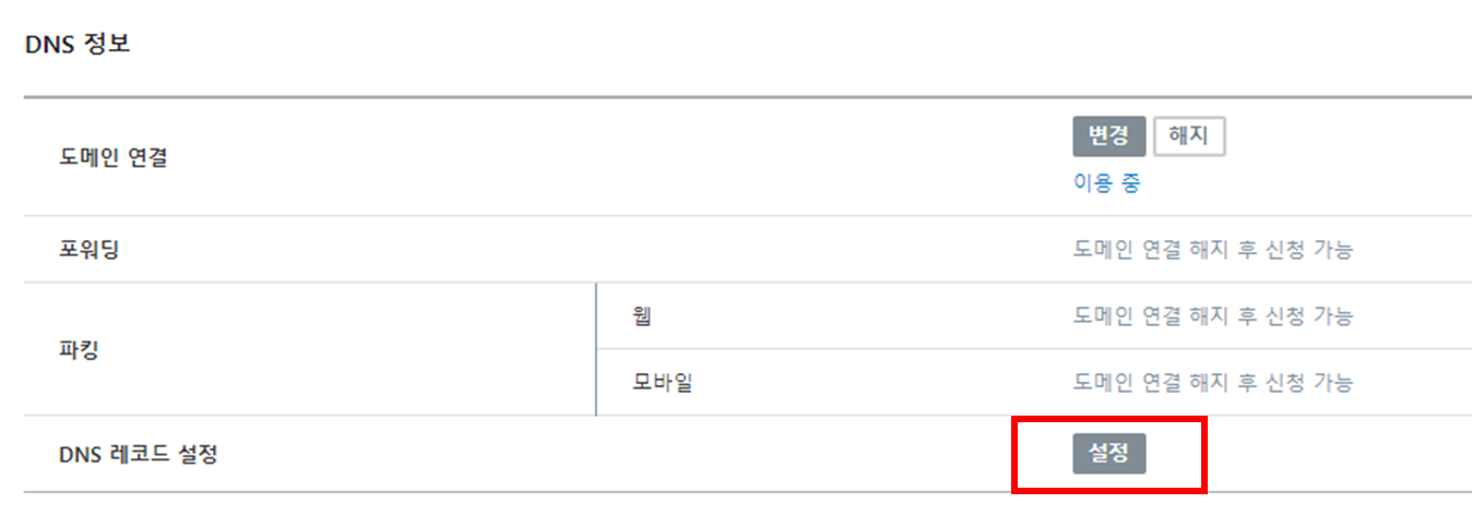 우측 하단에 DNS 레코드 설정을 선택해 주세요.