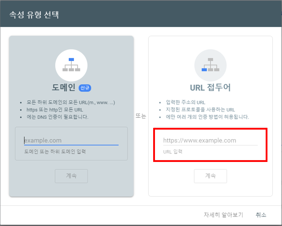 3. 하위 도메인 주소 입력
