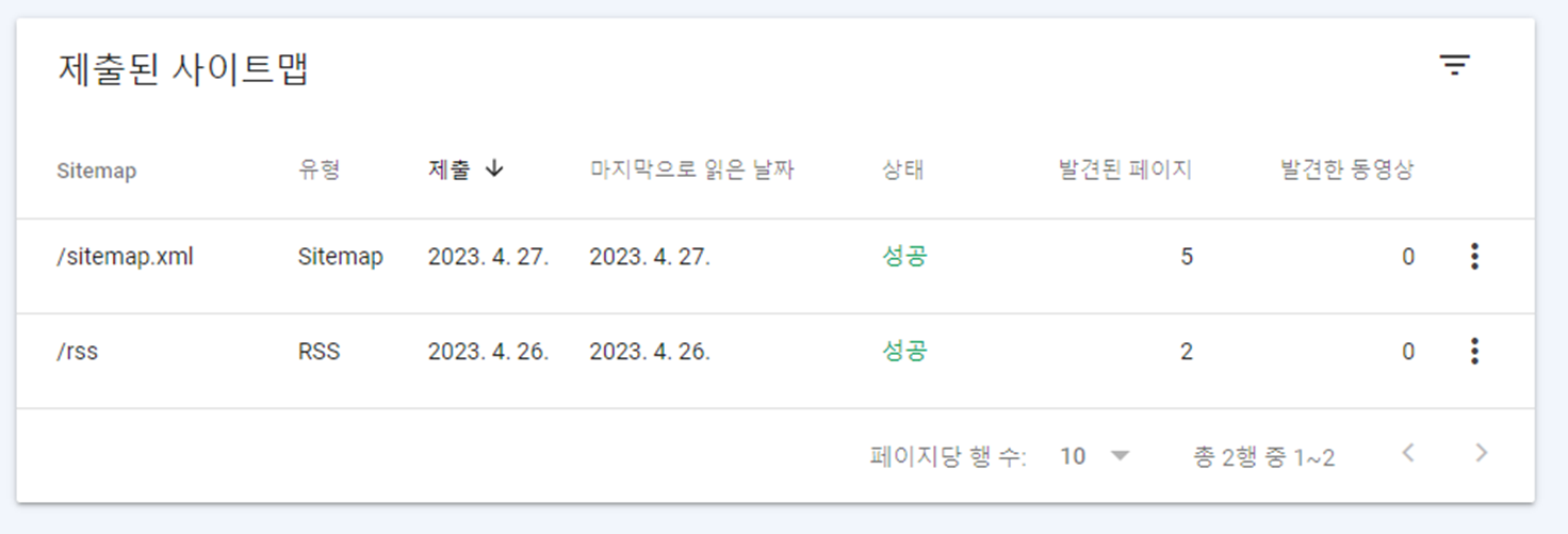 메인 도메인과 동일하게 하위 도메인도 sitemap과 rss를 등록해야 합니다.
