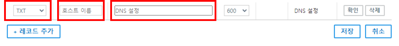 레코드를 추가를 선택하고 TXT 코드를 넣어줍니다.