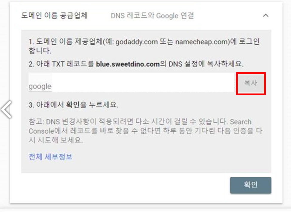 TXT 레코드 주소를 복사합니다.